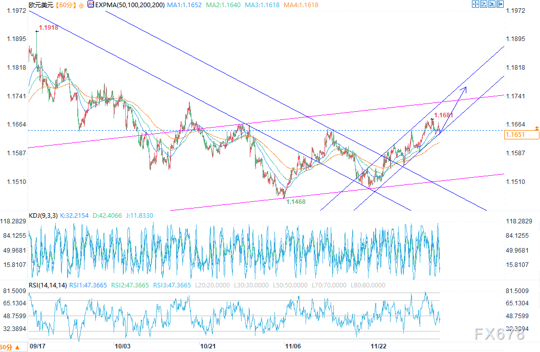 汇通财经APP讯——周五(12月5日)欧盘时段,日内走势上,欧元/美元先震荡上行,触及1.1671的日内高点后动能衰